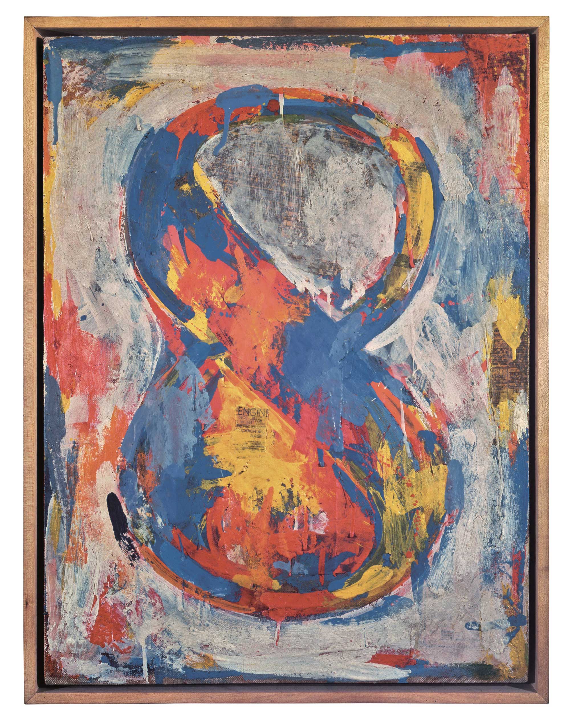 Dopo aver prestato servizio nella Guerra di Corea (1952-53), Johns tornò a New York, dove conobbe artisti come Marcel Duchamp e Robert Rauschenberg, oltre al musicista John Cage e al coreografo Merce Cunningham. Il percorso artistico di Johns è sempre stato incentrato sulla creazione di nuove immagini basate, come lui stesso affermava, su «cose che la mente già conosce». Johns ricorre spesso a oggetti familiari e preesistenti – bandiere, bersagli, mappe o numeri – che possono essere riprodotti su superfici piane senza ricorrere all’uso della prospettiva o di altri processi di illusione ottica. La bidimensionalità degli elementi rappresentati si contrappone alla forte matericità dell’encausto (tecnica impiegata fin dall’antichità romana nelle pitture murali), in cui il pigmento viene mescolato alla cera calda, fino a ottenere superfici estremamente resistenti.